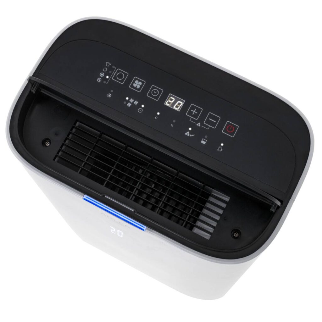 Με ροή αέρα 195 m³/ώρα και δύο ταχύτητες ανεμιστήρα, η συσκευή επιτρέπει την προσαρμογή της έντασης αφύγρανσης. Η οθόνη LED εμφανίζει την τρέχουσα υγρασία στον χώρο, ενώ η ρύθμιση της επιθυμητής υγρασίας κυμαίνεται από 30% έως 80% RH. Η λειτουργία μνήμης διατηρεί τις ρυθμίσεις μετά από διακοπή ρεύματος, ενώ ο χρονοδιακόπτης 1 έως 24 ωρών επιτρέπει τον προγραμματισμό λειτουργίας. Η συσκευή διαθέτει 4 λειτουργίες αφύγρανσης: στέγνωμα ρούχων, κανονική, κυκλοφορία αέρα και αυτόματη.​