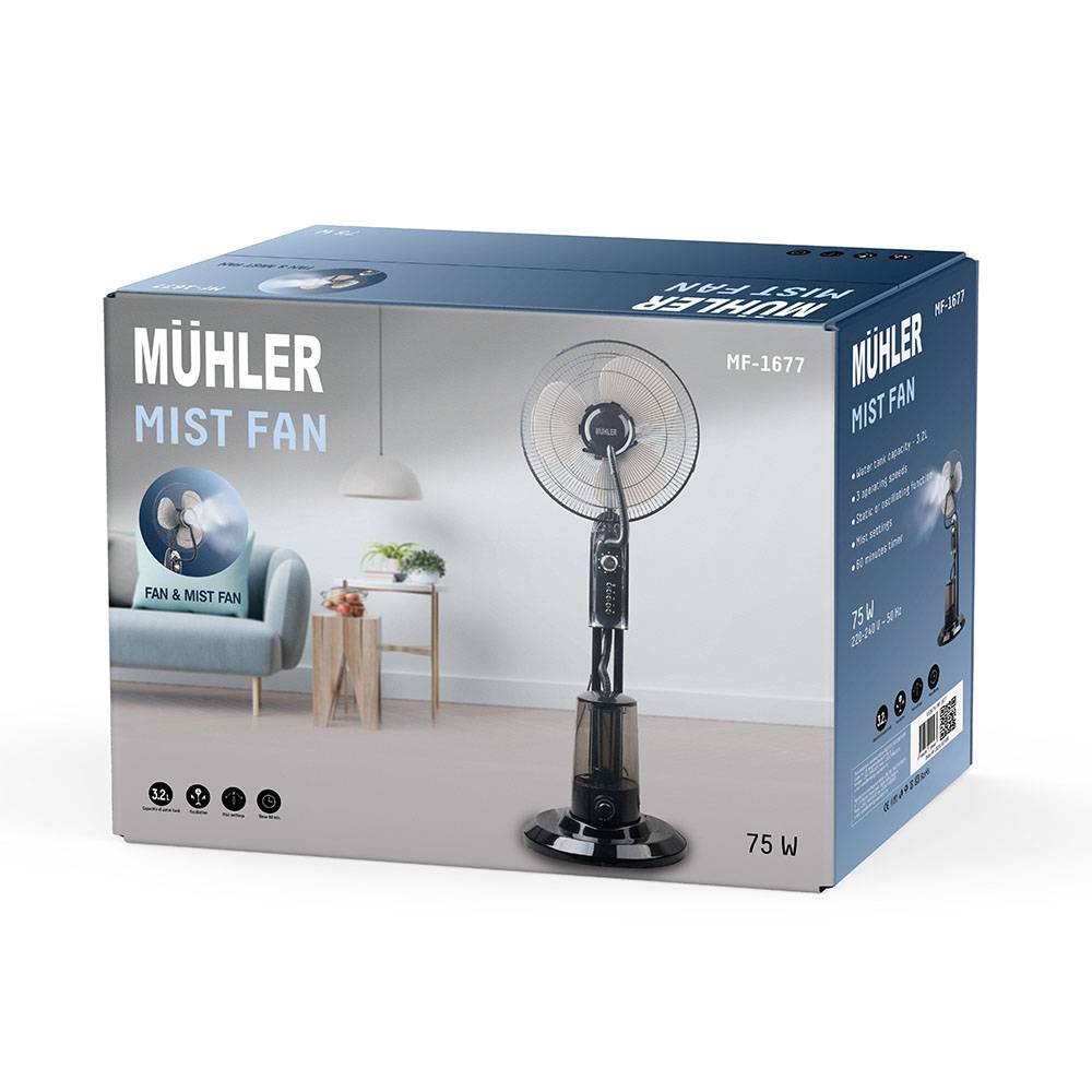 Ανεμιστήρας 16″ Muhler MF-1677/MF-1609RC, υδρονέφωση, έως 8 ώρες, 75 W