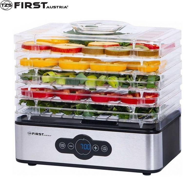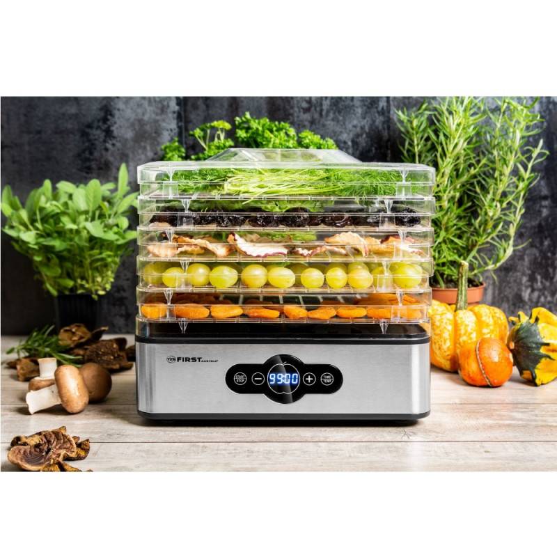 Αποξηραντής τροφίμων First Austria FA-5126-5, 240W, 5 επίπεδα, Χωρίς BPA, Θερμοστάτης, Χρονοδιακόπτης έως 99 ώρες, 35 έως 70C, Inox/Μαύρο