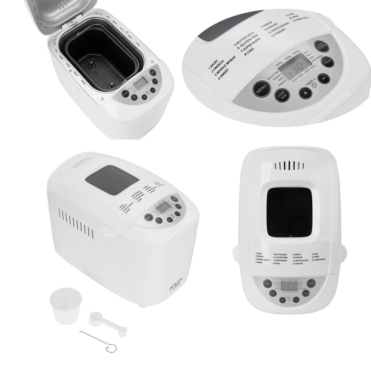 Αρτοπαρασκευαστής Adler AD-6019, 850W, 15 προγράμματα, 2 αναδευτήρες, οθόνη LED, λευκός