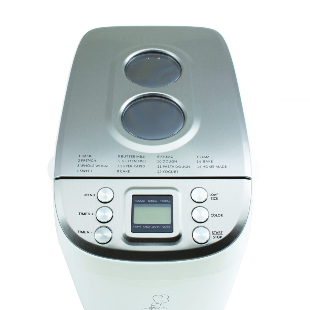 15 προγράμματα: Με 15 ενσωματωμένα προγράμματα, ο αρτοπαρασκευαστής προσφέρει πολλές δυνατότητες για την παρασκευή ψωμιού με διαφορετικές γεύσεις, υφές και είδη αλευριού.