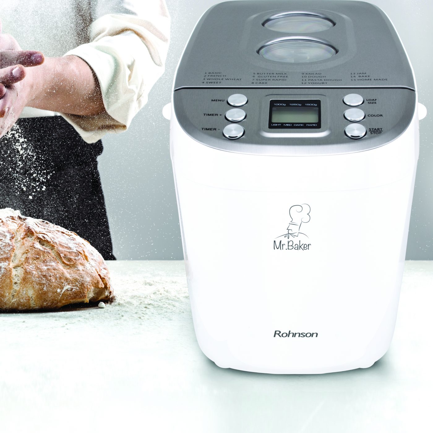 Αρτοπαρασκευαστής Rohnson R-2098, 850W, 2 αναδευτήρες, 15 προγράμματα, οθόνη LCD, Λευκό
