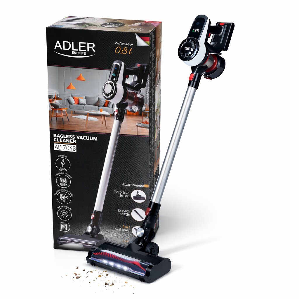 Ασύρματη ηλεκτρική σκούπα χωρίς σακούλα Adler AD-7048, 350W, 2000mAh, φίλτρο HEPA, 3 εξαρτήματα, τεχνολογία μοτέρ χωρίς ψήκτρες