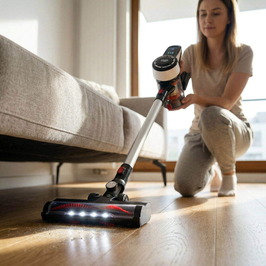 Η χειροκίνητη σκούπα Adler AD 7048 είναι μια επαγγελματική, υψηλής απόδοσης συσκευή, ιδανική για άνετο καθάρισμα πολλών δωματίων και εσωτερικών χώρων αυτοκινήτων. Ο ασύρματος σχεδιασμός σάς επιτρέπει να καθαρίζετε ολόκληρο το διαμέρισμα ή το γραφείο χωρίς να αναζητάτε πρίζες. Η εργονομική λαβή και το χαμηλό βάρος διευκολύνουν τη μεταφορά μεταξύ των χώρων. Χάρη στη βάση τοίχου που περιλαμβάνεται, δεν θα ανησυχείτε για την αποθήκευσή της.