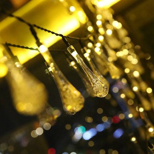 Διακοσμητικά ηλιακά λαμπάκια σε σχήμα σταγόνων Rila Crafts R-21, Γιρλάντα 6 μέτρων, LED, Μονόχρωμα, Ζεστό φως, Αδιάβροχα