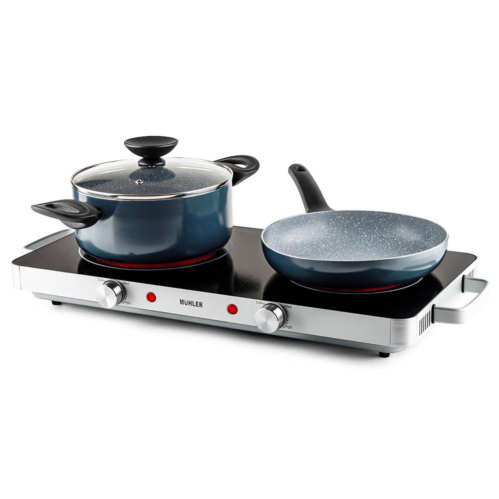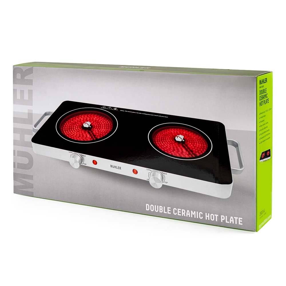 Διπλή κεραμική εστία Muhler MHP-2022IS, 2800W, Θερμοστάτης, Inox
