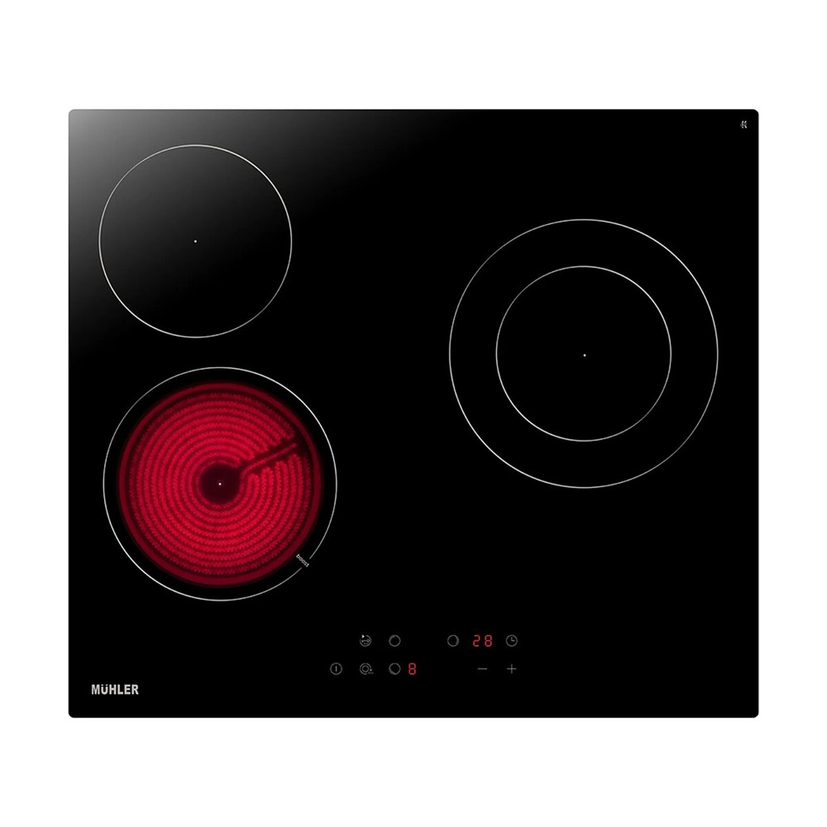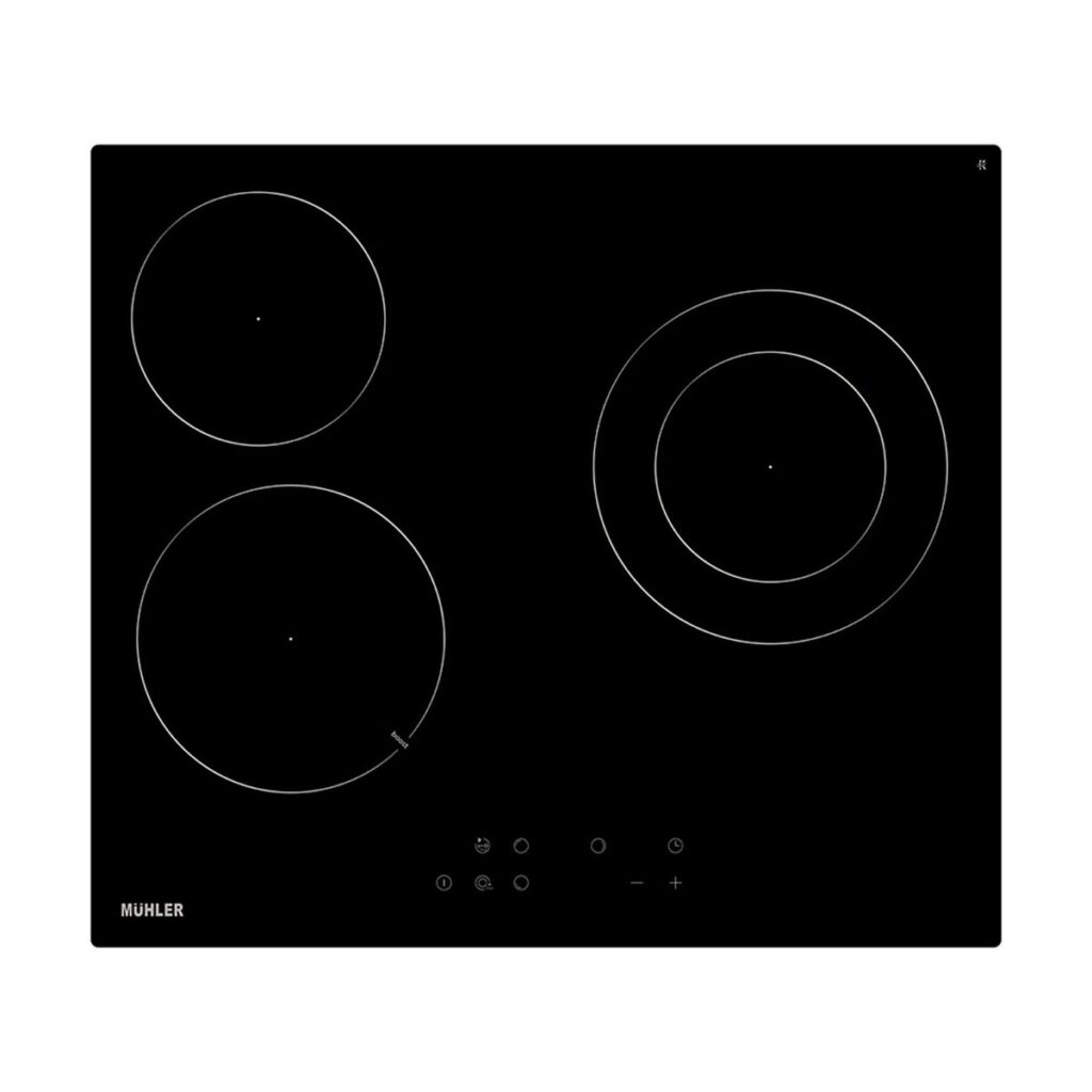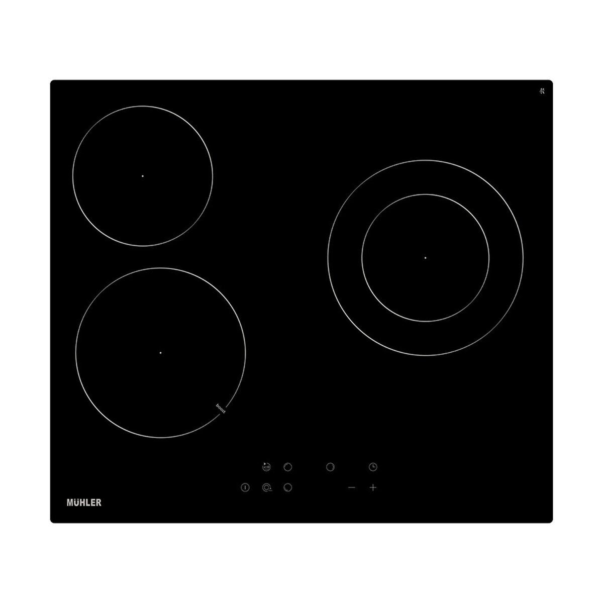 Εντοιχιζόμενη εστία Muhler CHP32, 5200W, 3 ζώνες, LED οθόνη, Αισθητηριακό χειριστήριο, Χρονοδιακόπτης, 2 χρόνια εγγύηση