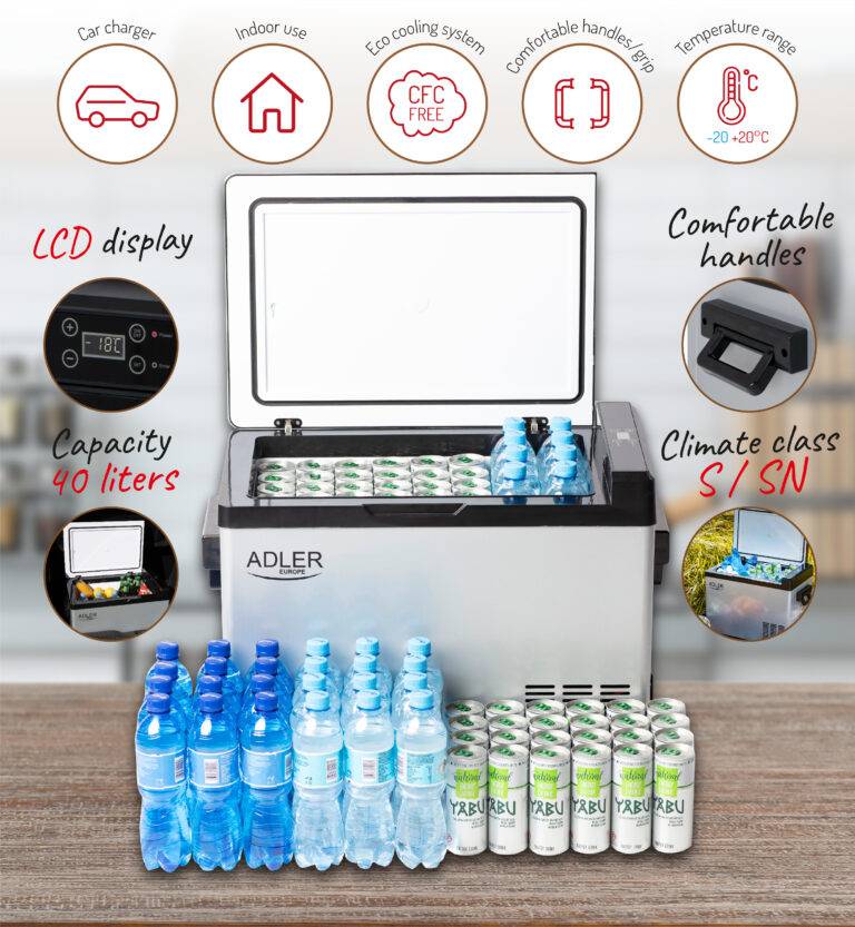 Το ψυγείο είναι μια σημαντική συσκευή που μας επιτρέπει να απολαμβάνουμε για περισσότερο χρόνο προϊόντα που χρειάζονται συγκεκριμένη θερμοκρασία φύλαξης. Το εκτιμούμε ιδιαίτερα στα μεγάλα ταξίδια, όταν κουραζόμαστε από σάντουιτς και στιγμιαίες σούπες. Αυτό που καθορίζει τη λειτουργικότητα του προτεινόμενου μοντέλου και το ξεχωρίζει από τα κλασικά φορητά ψυγεία είναι ο συνδυασμός ψυγείου και καταψύκτη. Επιπλέον, η εύχρηστη οθόνη LCD του Adler AD 8081 ενημερώνει για κρίσιμα δεδομένα, όπως η θερμοκρασία. Είναι ιδανικό για κρύα ποτά, παγωτό, φάρμακα ή εμβόλια.