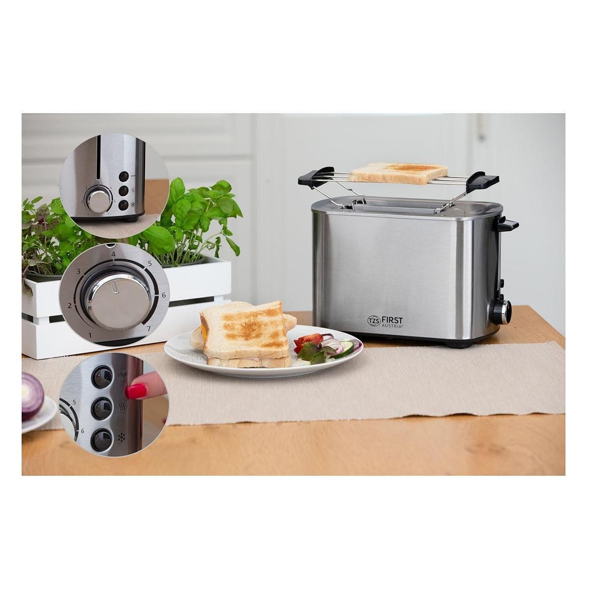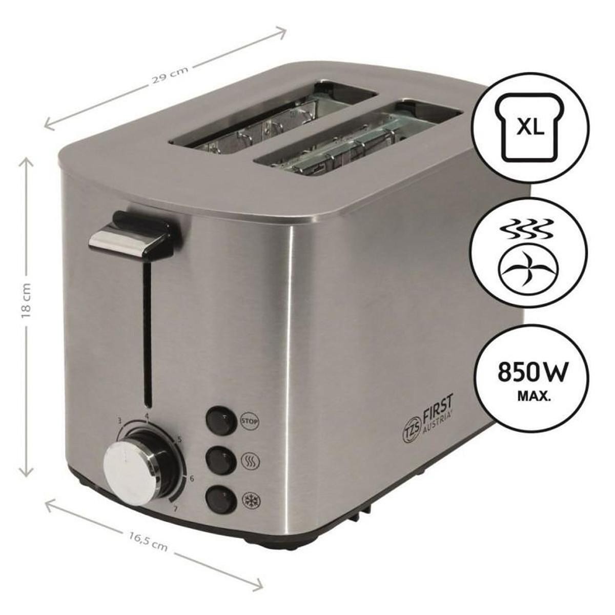 Φρυγανιέρα First Austria FA-5367-3, 850 W, για 2 φέτες, XL υποδοχή, Απόψυξη, Inox