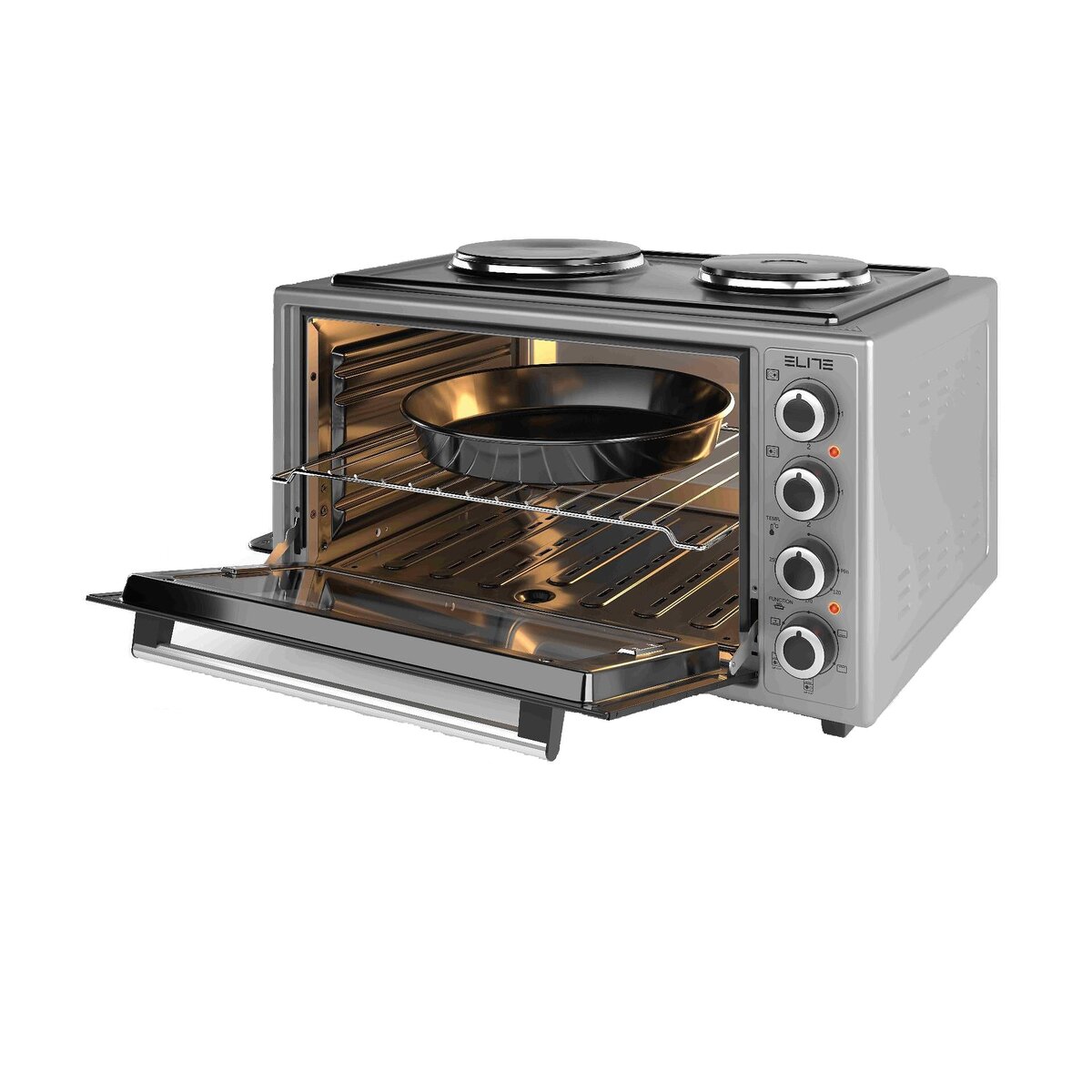 Ηλεκτρική κουζίνα ELITE EMO-FL482588, 3500W, 48L, 65L, 2 εστίες, ανεμιστήρας, φωτισμός, γκρι