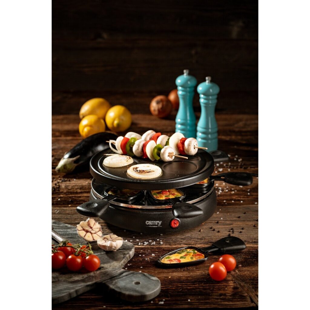 Όσοι αγαπούν τα κοινά δείπνα και το μαγείρεμα απευθείας στο τραπέζι θα εκτιμήσουν την ηλεκτρική ψησταριά Camry CR-6606. Αυτό το raclette grill συνδυάζει κλασική επιφάνεια ψησίματος με ατομικά μικρά τηγανάκια, καθιστώντας το ιδανικό για οικογενειακές συγκεντρώσεις και βραδιές με φίλους. Με συμπαγή σχεδιασμό και κομψό μαύρο χρώμα, η συσκευή αποτελεί μια πρακτική και διασκεδαστική λύση για οικιακή χρήση.