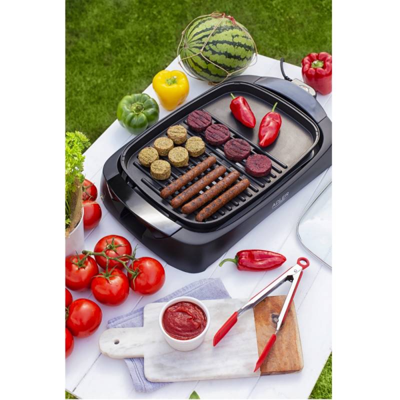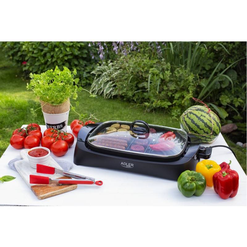 Η ηλεκτρική ψησταριά Adler AD 6610 με μέγιστη ισχύ 3000W (ονομαστική 2200W) καθιστά την προετοιμασία νόστιμων γευμάτων ιδιαίτερα εύκολη. Είναι εξοπλισμένη με πρακτικό διαφανές γυάλινο καπάκι με θερμομονωμένες λαβές. Η θερμοκρασία ρυθμίζεται ομαλά σε ευρύ φάσμα, επιτρέποντάς σας να διατηρείτε τη σωστή θερμοκρασία για τα τρόφιμα που ψήνετε.