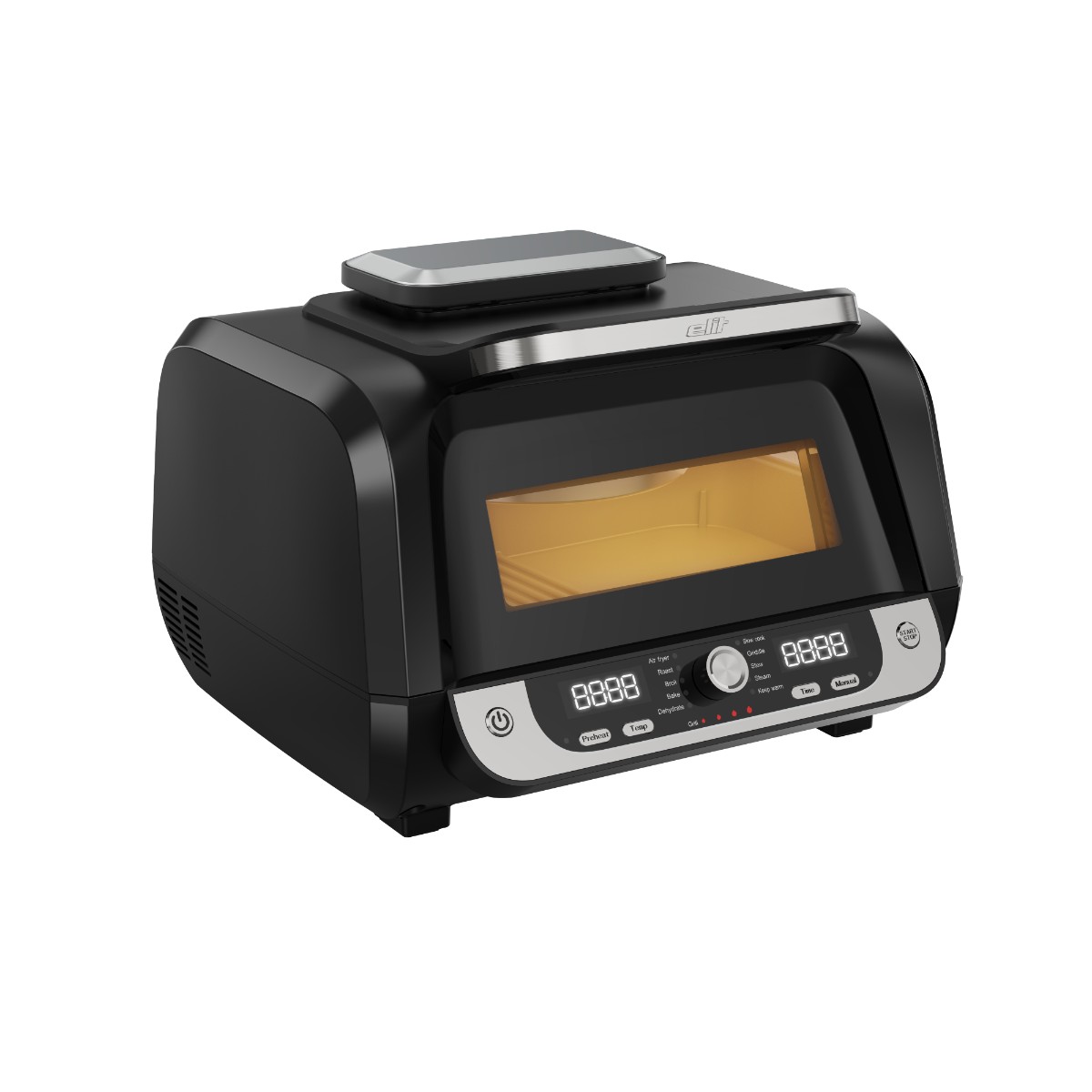 Με ισχύ έως 1750W και ρυθμιζόμενη θερμοκρασία από 50 έως 230°C, η Elit GrillFry360 PRO σας επιτρέπει να ετοιμάζετε ποικιλία φαγητών – από ψητές πατάτες και λαχανικά μέχρι κρέας, ψάρι και ακόμη και γλυκά. Η συσκευή χρησιμοποιεί κυκλοφορία θερμού αέρα 360° με διπλό θερμαντικό στοιχείο, προσφέροντας έως και 66% πιο γρήγορο μαγείρεμα και έως 95% λιγότερα λιπαρά.