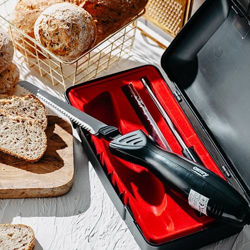 Σας παρουσιάζουμε το ηλεκτρικό μαχαίρι CR 4513 — ένα αξιόπιστο και πολυχρηστικό εργαλείο κουζίνας που διευκολύνει την καθημερινή προετοιμασία φαγητού. Με λεπίδες υψηλής ποιότητας από ανοξείδωτο ατσάλι, είναι ιδανικό για κοπή κατεψυγμένων και διαφόρων άλλων τροφίμων. Το σετ περιλαμβάνει δύο διαφορετικές λεπίδες και πιρούνι, ώστε να έχετε ό,τι χρειάζεστε σε κάθε περίσταση.