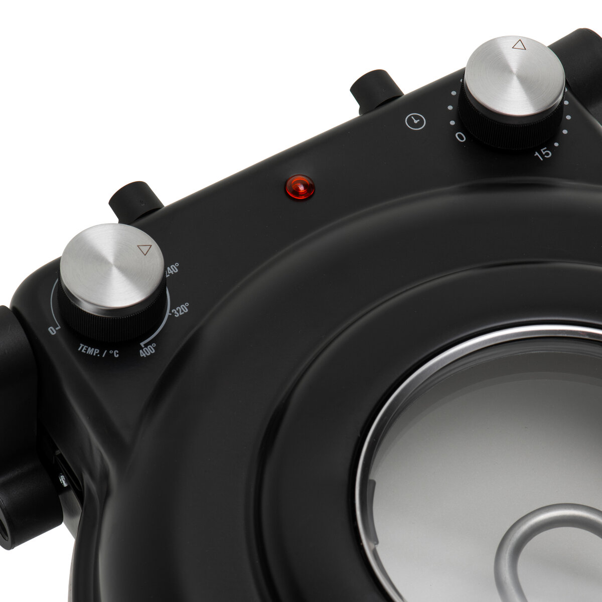 Για μεγαλύτερη άνεση, η συσκευή διαθέτει διαισθητικό πίνακα ελέγχου με δύο περιστροφικούς διακόπτες – έναν για τη θερμοκρασία και έναν για τον χρόνο. Το σώμα είναι κατασκευασμένο από ψυχρής έλασης λαμαρίνα με μαύρο ματ φινίρισμα, προσφέροντας κομψή και μοντέρνα εμφάνιση.