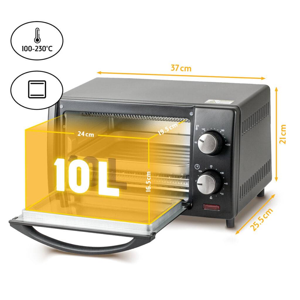 Ηλεκτρικός φούρνος First Austria FA-5041-2, 800 W, 10 λίτρα, Χρονοδιακόπτης, έως 230°C, Μαύρο