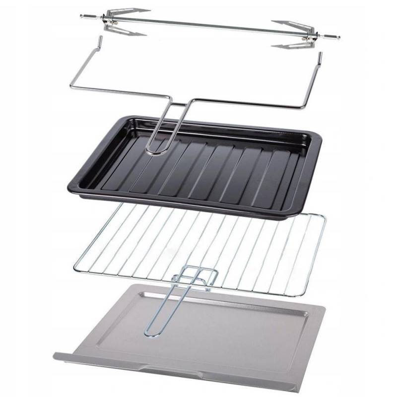 - Αξεσουάρ: εμαγιέ ταψί, σχάρα, σούβλα, δίσκος για ψίχουλα