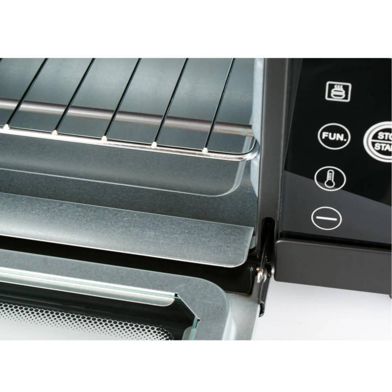 Η άνεση είναι στο επίκεντρο με την μοντέρνα οθόνη LCD, τον χειρισμό αφής και τον ενσωματωμένο χρονοδιακόπτη με ρολόι και ηχητικό σήμα, που καθιστούν τη χρήση της συσκευής διαισθητική και ακριβή. Ο εσωτερικός φωτισμός επιτρέπει την παρακολούθηση της διαδικασίας χωρίς να ανοίγετε τον φούρνο, ενώ το διπλό σκληρυμένο γυαλί παρέχει εξαιρετική θερμομόνωση και ασφάλεια. Στο σετ περιλαμβάνονται εμαγιέ ταψί, σχάρα, σούβλα και δίσκος για ψίχουλα, ώστε να μπορείτε να ξεκινήσετε αμέσως. Με κομψό σχεδιασμό και ιδανικές διαστάσεις, ο FA-5046-2 αποτελεί το τέλειο συμπλήρωμα κάθε κουζίνας.