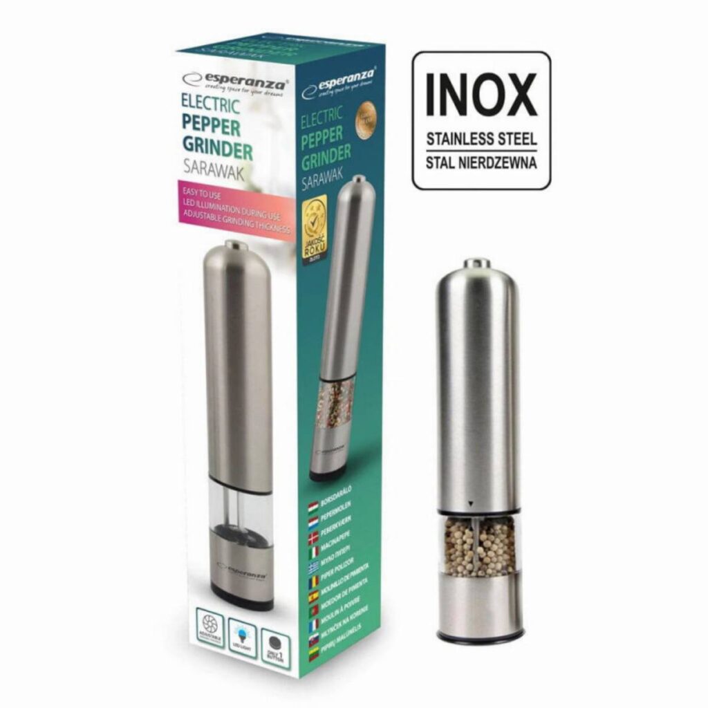 Ηλεκτρικός μύλος Esperanza EKP002, LED, Για αλάτι και πιπέρι, 4xAA μπαταρίες, Inox
