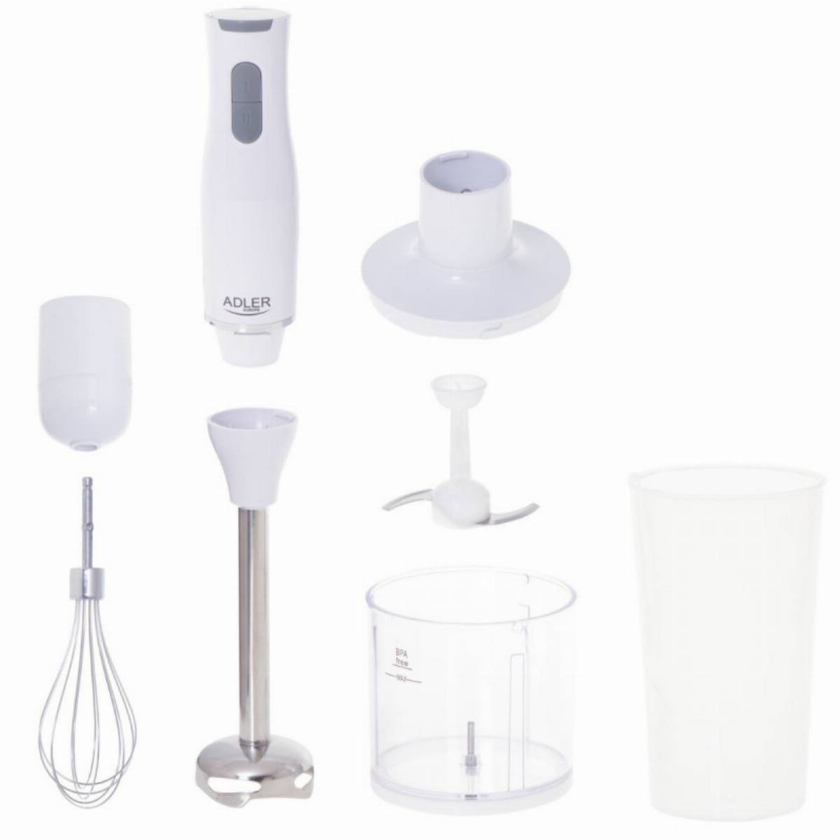 Ραβδομπλέντερ, κόπτης και αναδευτήρας 3-σε-1 Adler AD 4620, 800W, 2 ταχύτητες, Κοπτήρας: 450 ml, Κανάτα: 750 ml, Λευκό