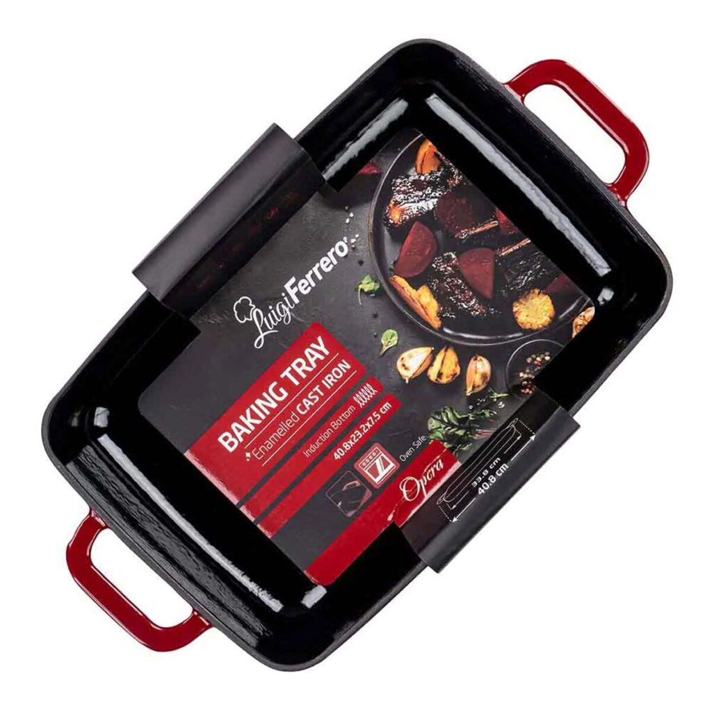 Μαντεμένιο ταψί ψησίματος Luigi Ferrero Opera FR-3320, 40.8×23.2×7.5cm, Ορθογώνιο, Εμαγιέ, Κόκκινο