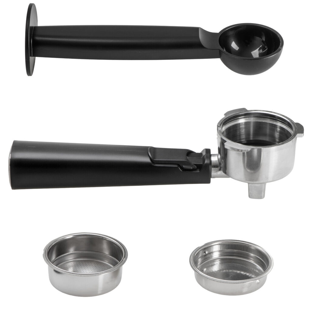 - Στη συσκευασία: 1x portafilter για 1 φλιτζάνι εσπρέσο, 1x portafilter για 2 φλιτζάνια εσπρέσο, 1x κουτάλι με tamper, 1x λαβή για φίλτρο