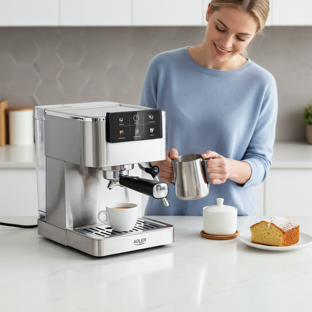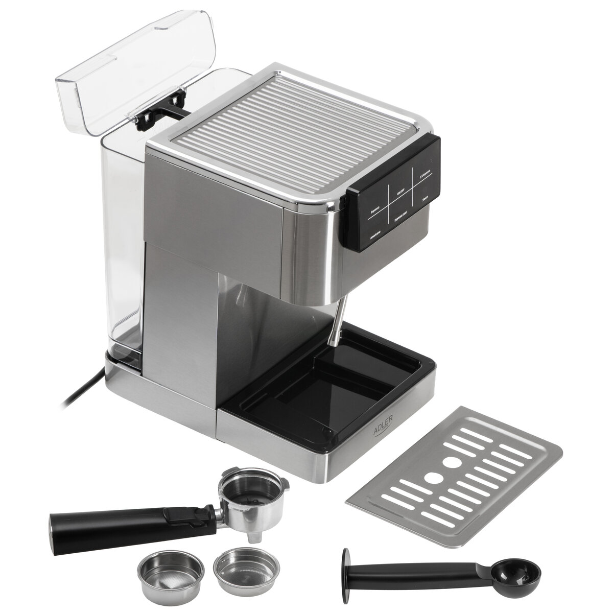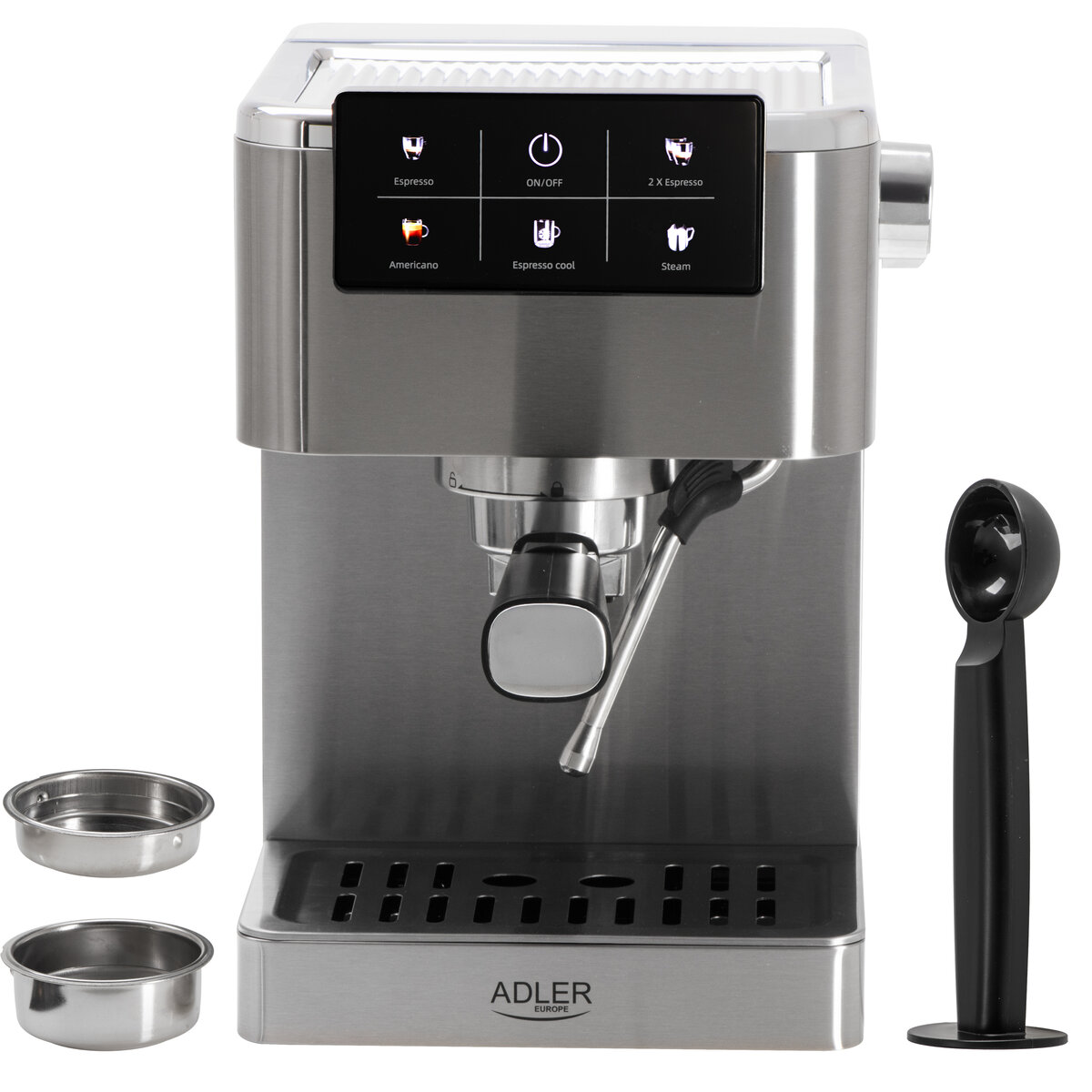 Μηχανή εσπρέσο Adler AD-4390, 1350W, 20bar, LCD touch panel, 5 λειτουργίες, inox
