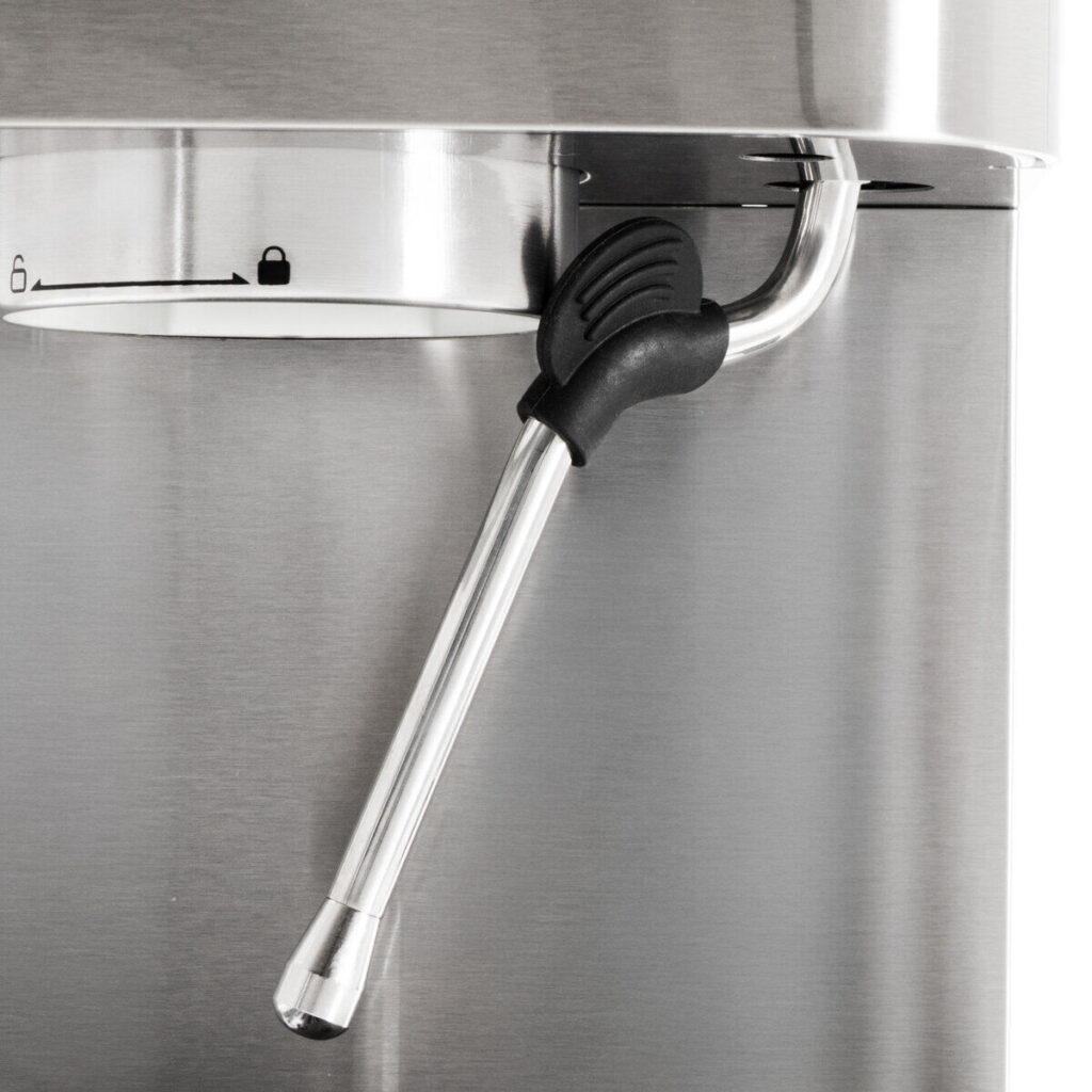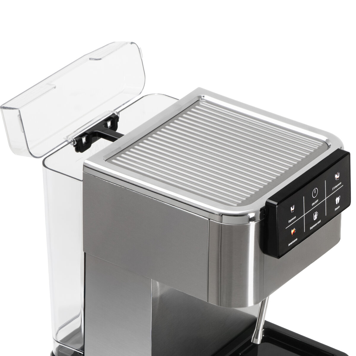 Το σώμα από ανοξείδωτο ατσάλι (inox) προσφέρει σταθερότητα και premium αίσθηση, ενώ το LCD touch panel κάνει τον χειρισμό εύκολο και διαισθητικό. Διαθέτετε 5 λειτουργίες σε μία συσκευή — από κλασικό εσπρέσο έως αμερικάνο και αφρισμό γάλακτος. Το μεγάλο, διαφανές και αποσπώμενο δοχείο νερού 1.5L με πρακτική αναδιπλούμενη λαβή διευκολύνει το γέμισμα και τον καθαρισμό, ενώ η θερμαινόμενη επάνω επιφάνεια είναι χρήσιμη για προθέρμανση φλιτζανιών.