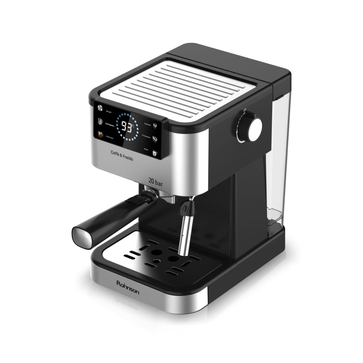 Η Rohnson R-98028 έχει σχεδιαστεί για απαιτητικούς λάτρεις του καφέ που αναζητούν ποιότητα, λειτουργικότητα και κομψό σχεδιασμό σε μία συσκευή. Με ισχύ 1350W και επαγγελματική αντλία πίεσης 20 bar, προσφέρει πλούσια και κρεμώδη κρέμα, είτε ετοιμάζετε κλασικό espresso είτε δροσερό freddo καφέ.