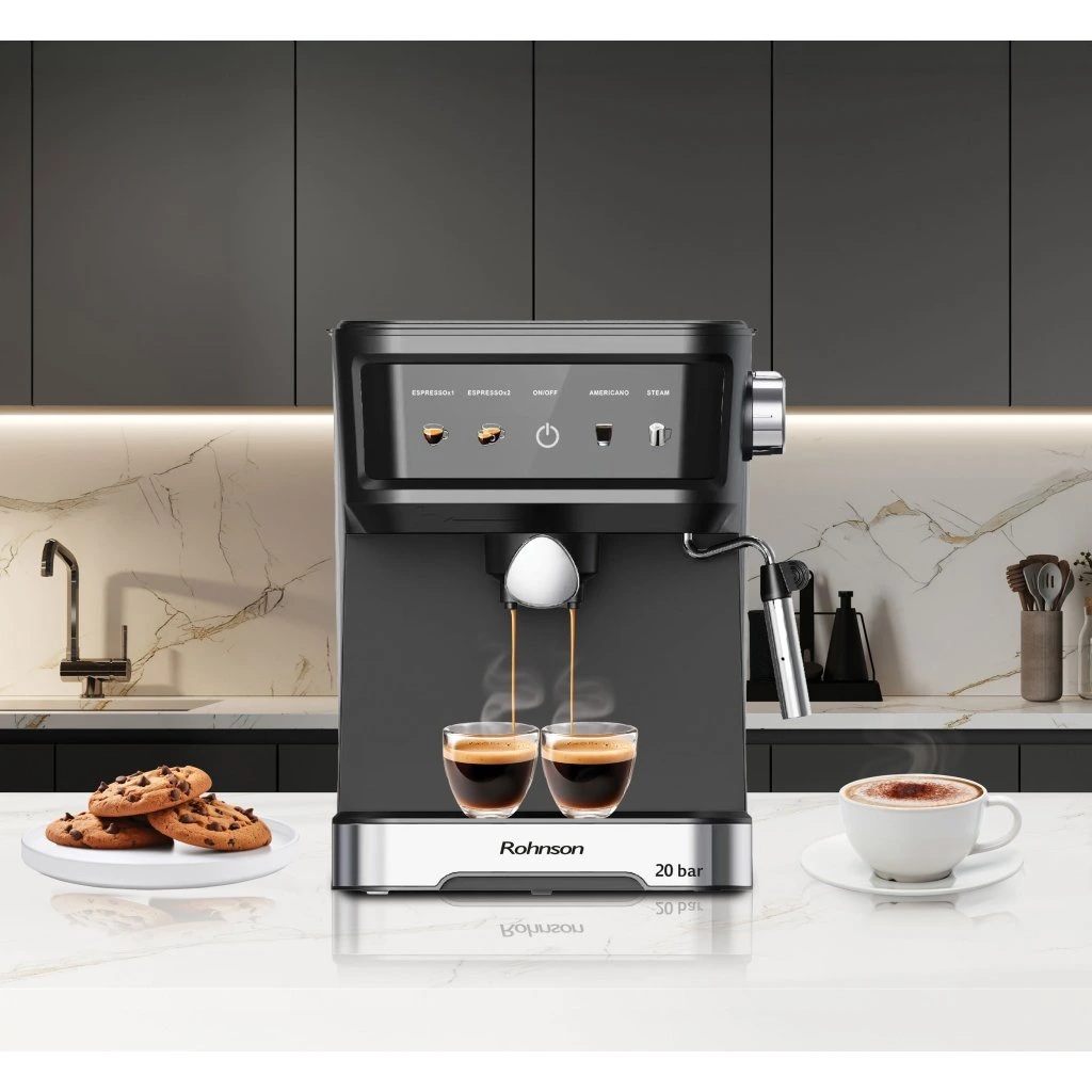 Μηχανή εσπρέσο Rohnson R-98035, 850W, 20 bar, οθόνη LED, δοχείο 1.5L, ακροφύσιο για καπουτσίνο, Μαύρο