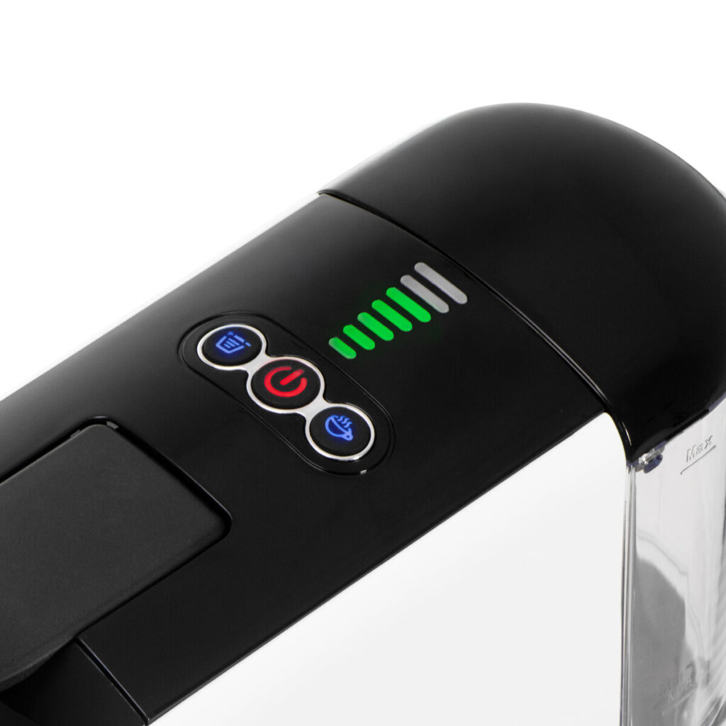 Η χρήση είναι ιδιαίτερα εύκολη, με μόλις 3 κουμπιά (λιγότερο νερό, περισσότερο νερό, ενεργοποίηση/απενεργοποίηση), ενώ οι 7 ρυθμίσεις ποσότητας νερού προσφέρουν ακριβή έλεγχο στο μήκος και την ένταση του καφέ. Οι συμπαγείς διαστάσεις και το περίβλημα από πλαστικό ABS την κάνουν ιδανική για καθημερινή χρήση, ενώ ο συνδυασμός Λευκό/Μαύρο δείχνει μοντέρνος και «καθαρός» στον πάγκο.
