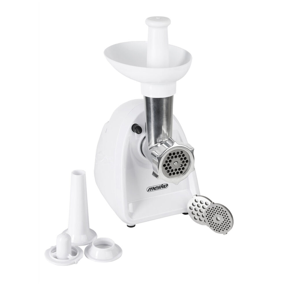 Κρεατομηχανή Mesko MS-4809, 1500W, 2 ταχύτητες, 3 δίσκοι κοπής + εξάρτημα για λουκάνικα, λευκή