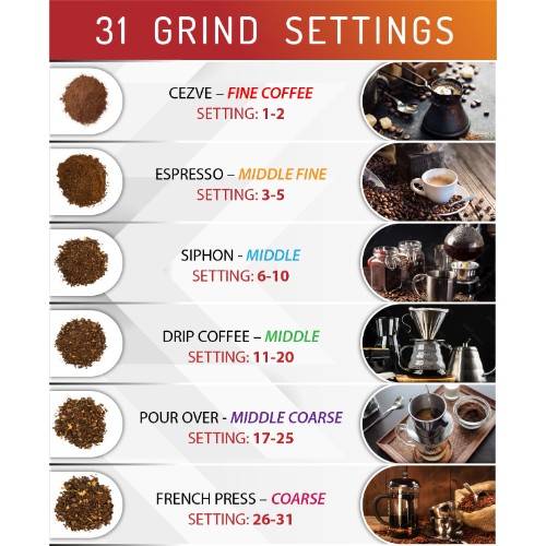 • 31 ρυθμίσεις άλεσης