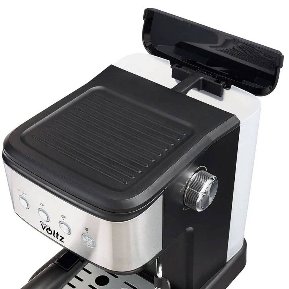 Μηχανή Espresso Oliver Voltz OV51171F, 1.2L, 20 bar, 1100W, Δίσκος κρέμας, Μαύρο/Ανοξείδωτο
