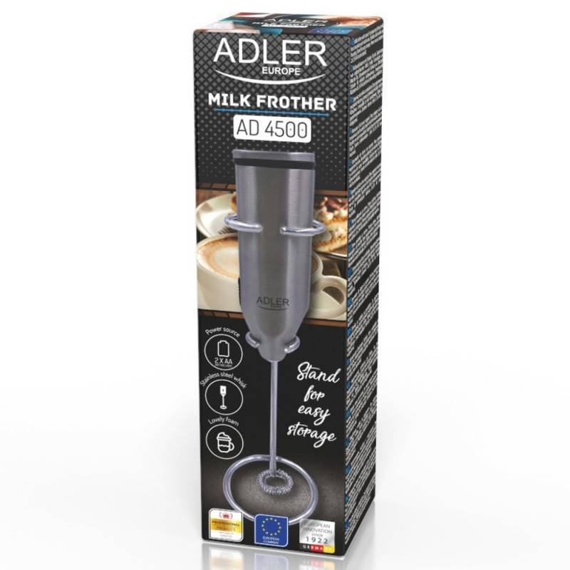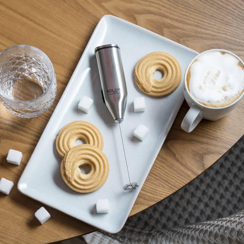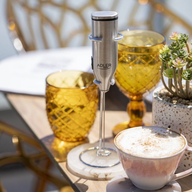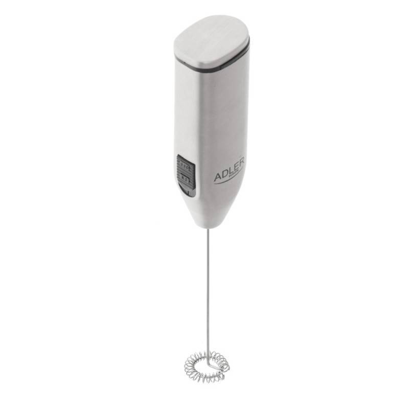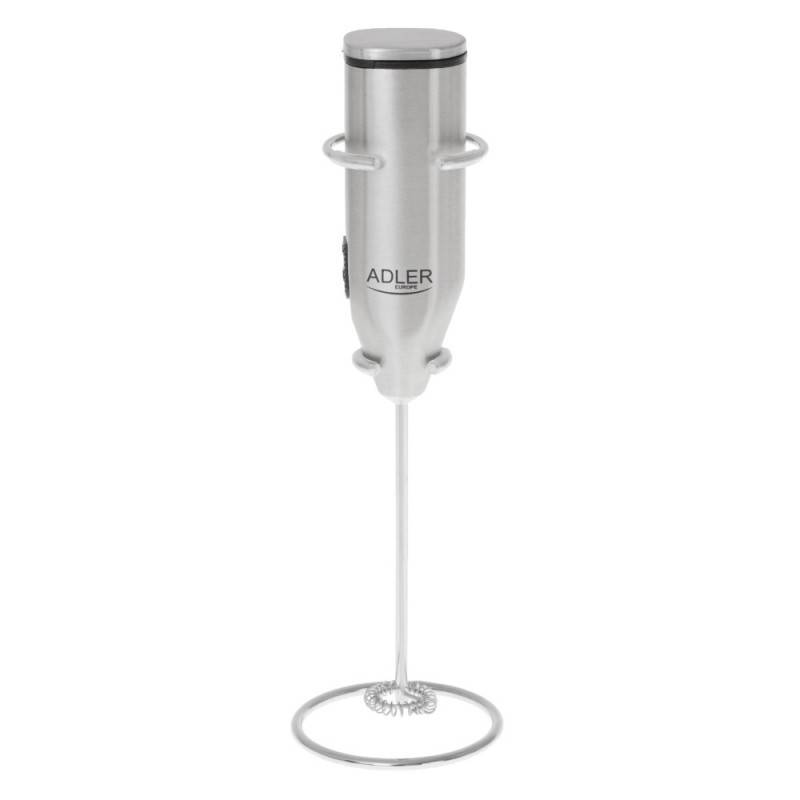 Μίξερ για φραπέ με βάση Adler AD 4500, ανοξείδωτος αναδευτήρας και σώμα, 2xAA, Ασημί
