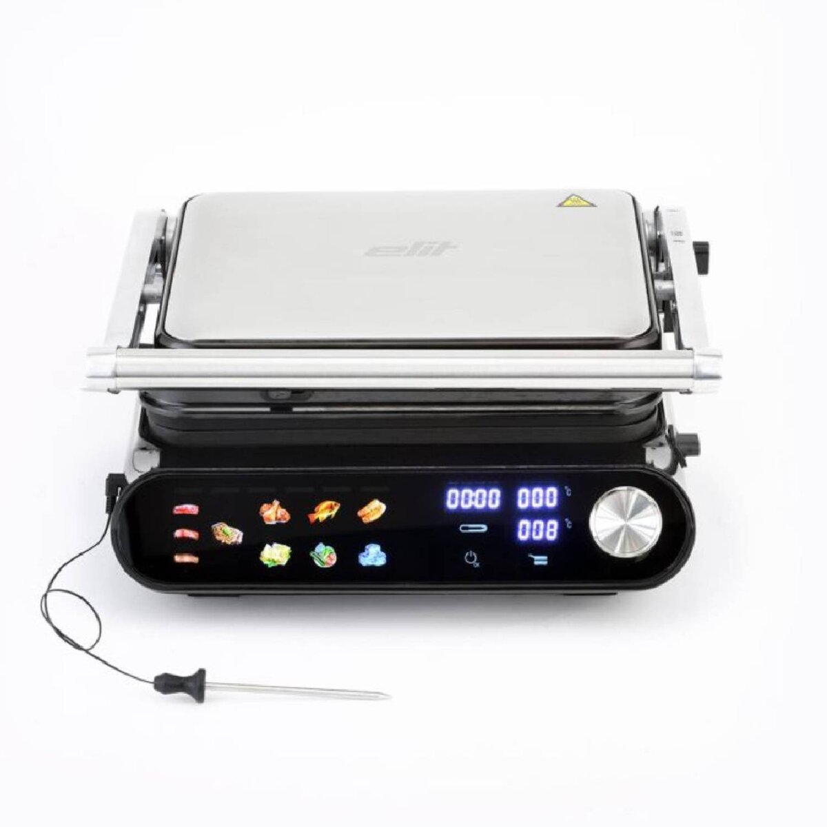 Γκριλιέρα επαφής Elit GRILLZILLA, 2200W, 7 προγράμματα, έως 230°C, οθόνη αφής, αισθητήρας θερμοκρασίας, άνοιγμα 180°, inox