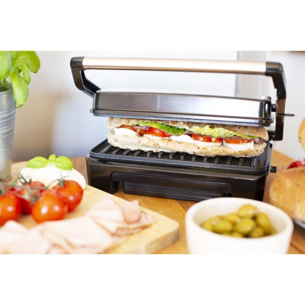 Το Rohnson R-2105 θερμαίνεται γρήγορα χάρη στην ισχύ των 800W, ενώ η πλάκα XXL (23 εκ. x 14,5 εκ.) σας επιτρέπει να ετοιμάσετε ταυτόχρονα 2 τοστ ή μεγαλύτερες μερίδες σε σύντομο χρόνο. Η μαρμάρινη αντικολλητική επίστρωση βοηθά το φαγητό να ψήνεται ομοιόμορφα χωρίς να κολλάει, ενώ το κλείδωμα της λαβής διατηρεί την κατάλληλη πίεση για πιο ευχάριστη υφή και τέλεια ψημένη κρούστα.