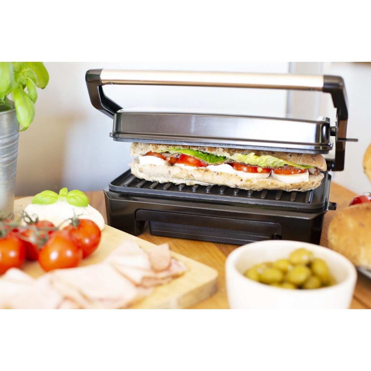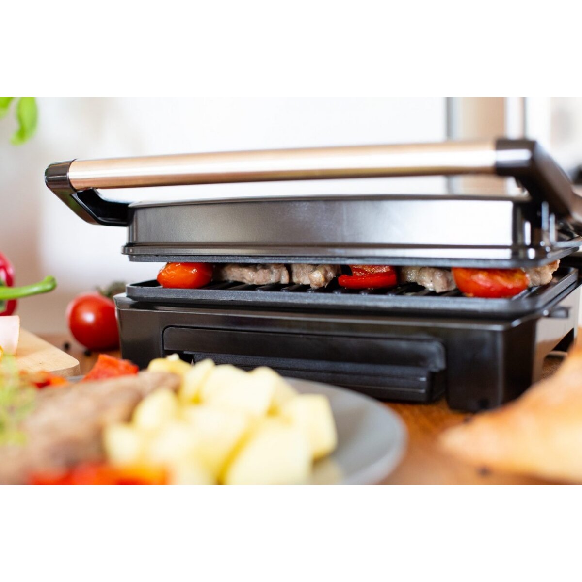Το ανοξείδωτο σώμα είναι ανθεκτικό και εύκολο στη συντήρηση, ενώ το σώμα και η λαβή που δεν θερμαίνονται ενισχύουν την ασφάλεια κατά τη χρήση. Το κλείδωμα της λαβής εξασφαλίζει σταθερή πίεση, κάτι που βοηθά στο ομοιόμορφο ψήσιμο και σε καλύτερο τελικό αποτέλεσμα.
