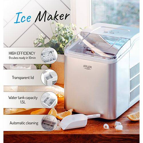 Παγομηχανή Adler AD-8086, 100 W, 12 κιλά/24 ώρες, 1.5L, Ασημί