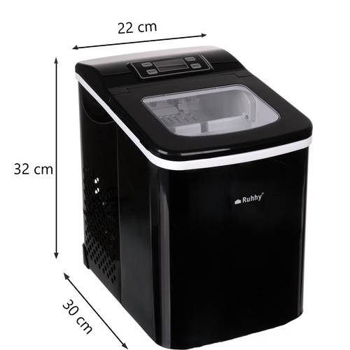 Παγομηχανή Ruhhy 25565, 120W, 12 κιλά/24 ώρες, 2 μεγέθη παγόκυβων, Αυτοκαθαρισμός, Μαύρη