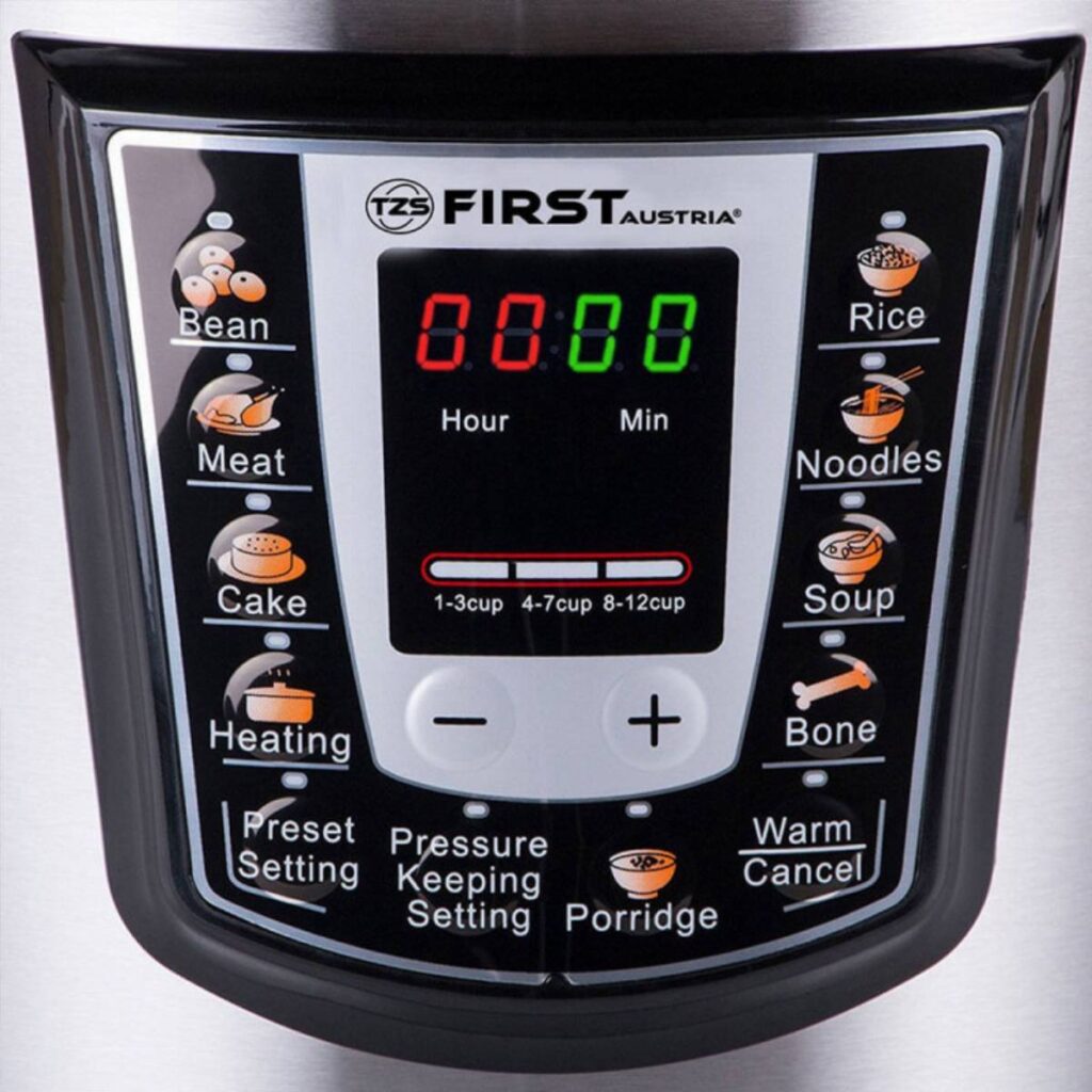 Πολυμάγειρας πίεσης First Austria FA-5130, 1000W, 6 λίτρα, 12 προγράμματα, χρονοδιακόπτης, καθυστέρηση έναρξης, αντικολλητικός κάδος, Inox