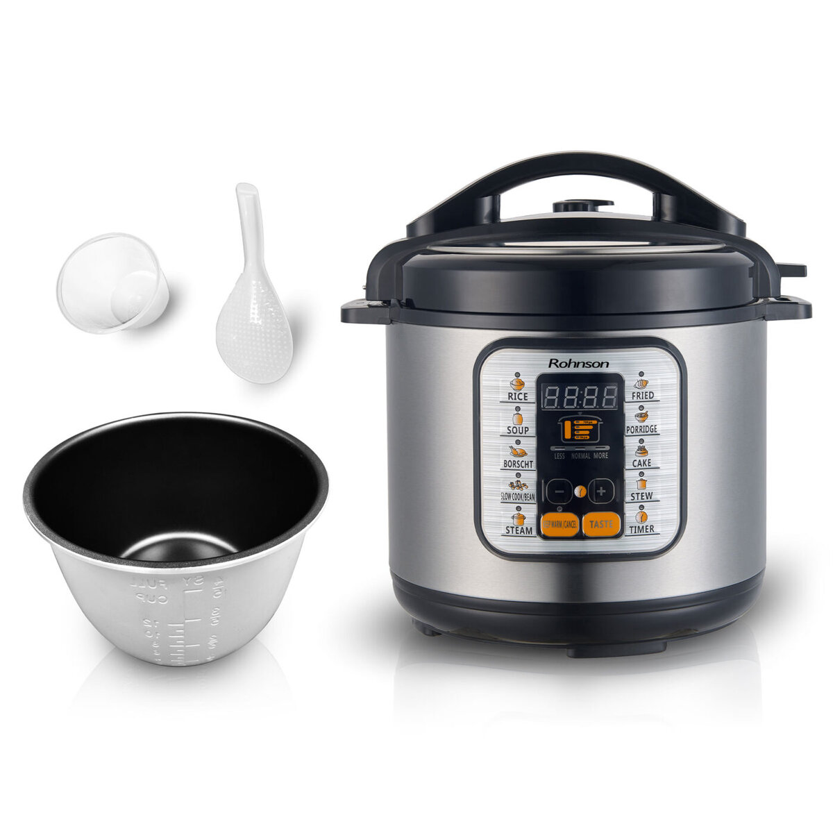 Πολυμάγειρας πίεσης Rohnson R-2875, 1000W, 6L, Χρονοδιακόπτης, 9 προγράμματα, Καθυστέρηση έναρξης, Ανοξείδωτο