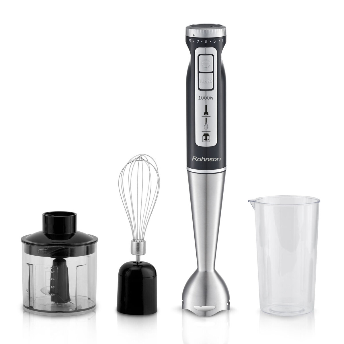 Ραβδομπλέντερ, chopper και μίξερ 3-σε-1 Rohnson R-5794, 1000W, μοτέρ DC, 9 ταχύτητες, λειτουργία Turbo, Μαύρο