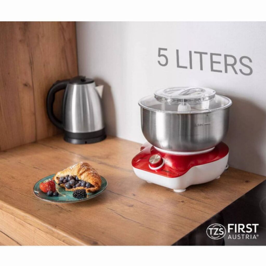 Ρομπότ κουζίνας First Austria FA-5259-2-RE, 800W, 5 λίτρα, 6 ταχύτητες, PULSE, 3 αναδευτήρες, Κόκκινο