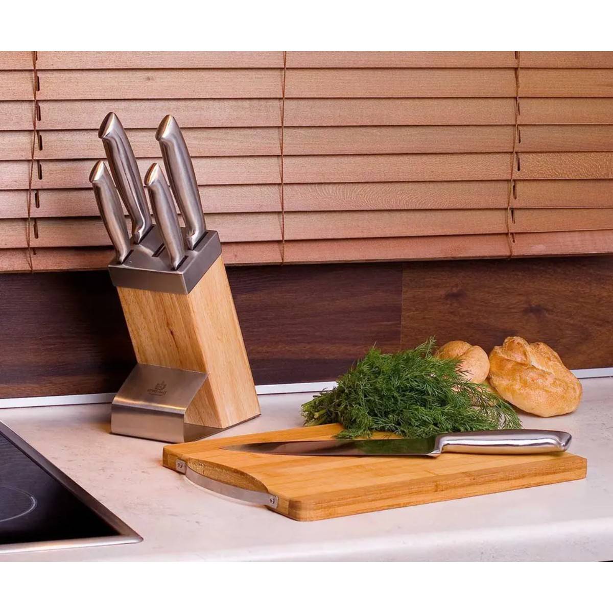 Σετ μαχαιριών με βάση Kinghoff KH-1151, 6 τεμάχια, ανοξείδωτο ατσάλι, ξύλινη βάση
