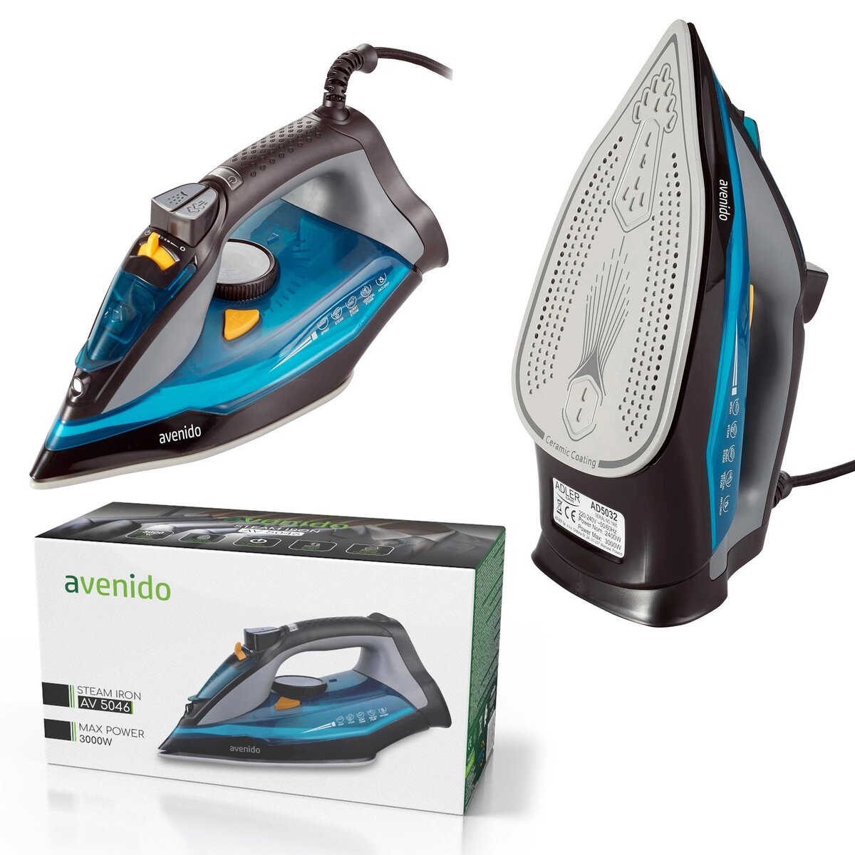 Σίδερο Avenido AV-5046, 3000W, Κεραμική επίστρωση, δοχείο 0.35 ml, Αυτοκαθαρισμός, συνεχής παροχή ατμού 45 g/min, Μπλε