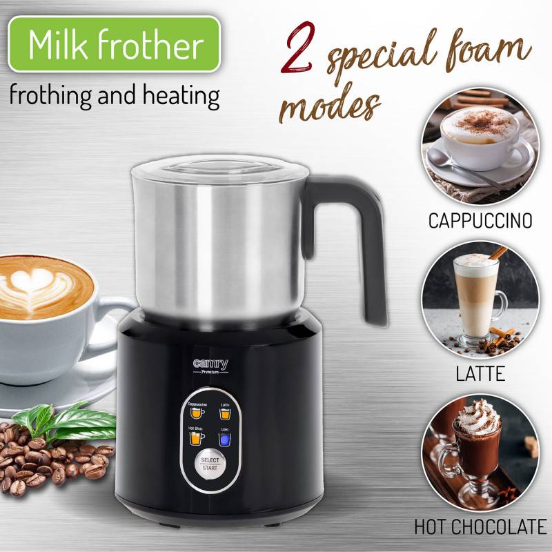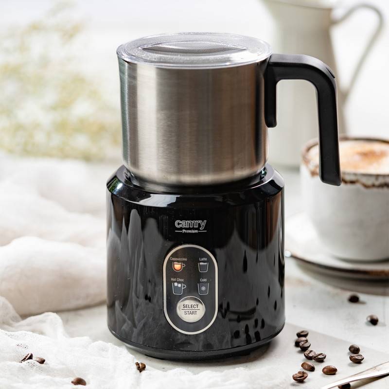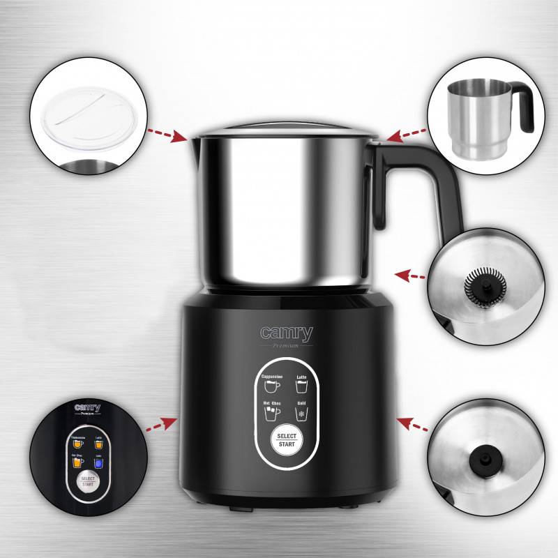 Συσκευή αφρόγαλου Camry CR 4498, 1000W, Φωτιζόμενα κουμπιά, Μαύρο/ανοξείδωτο