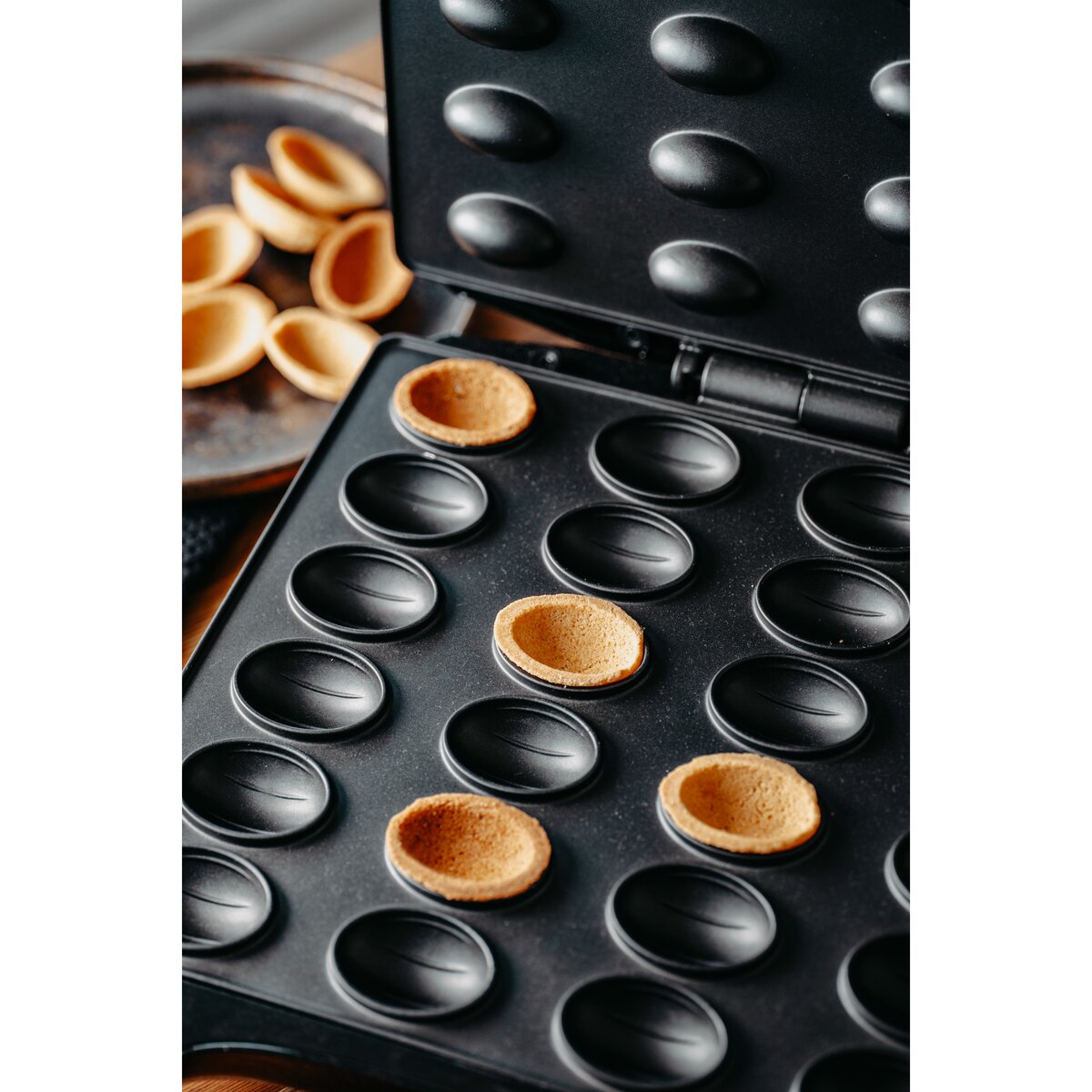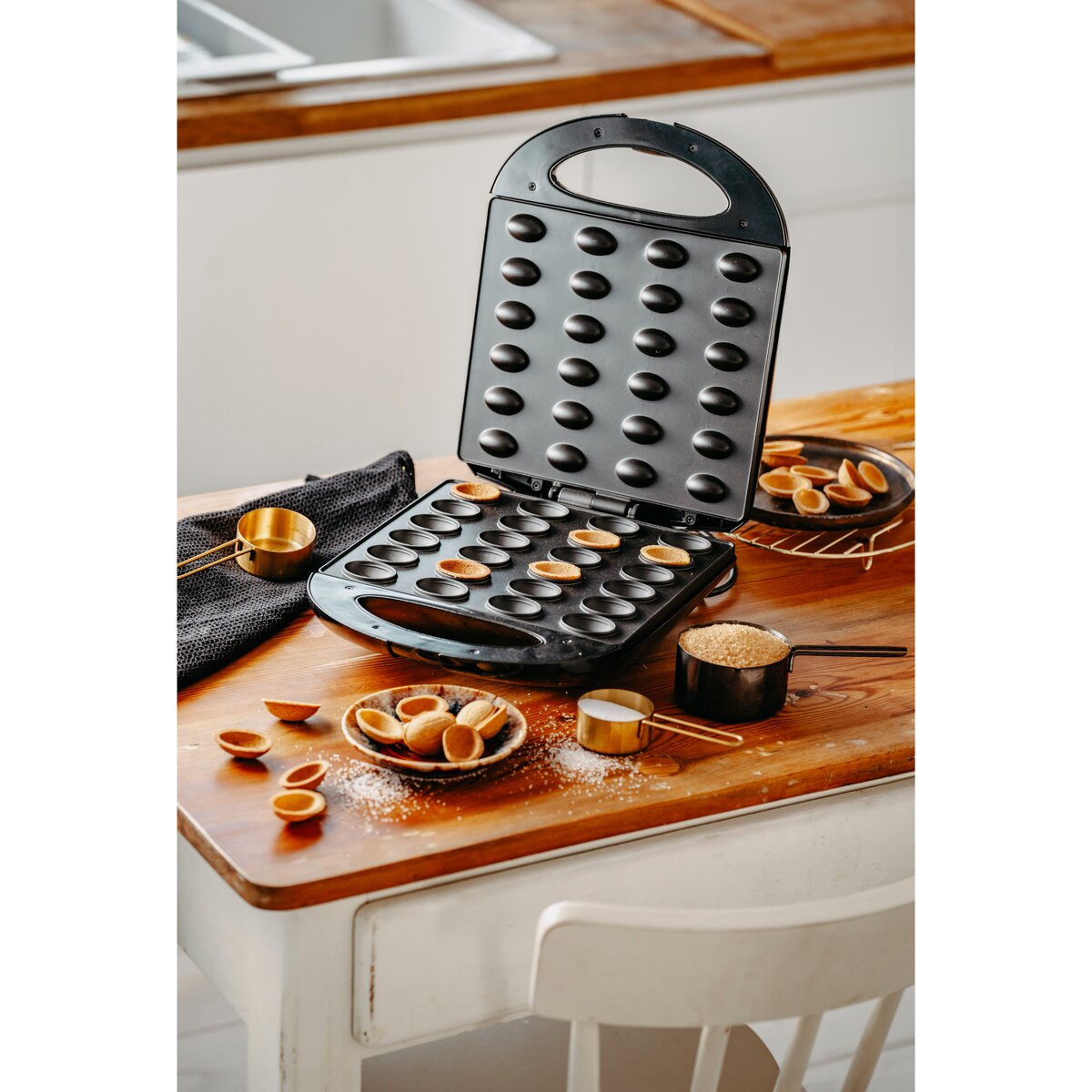 Η συσκευή Mesko MS-3041 είναι ιδανική επιλογή για όσους αγαπούν να ετοιμάζουν νόστιμα γλυκά στο σπίτι. Σας επιτρέπει να ψήνετε 24 μισά καρυδάκια κάθε φορά, δηλαδή 12 ολόκληρα γλυκά καρυδάκια σε έναν μόνο κύκλο.