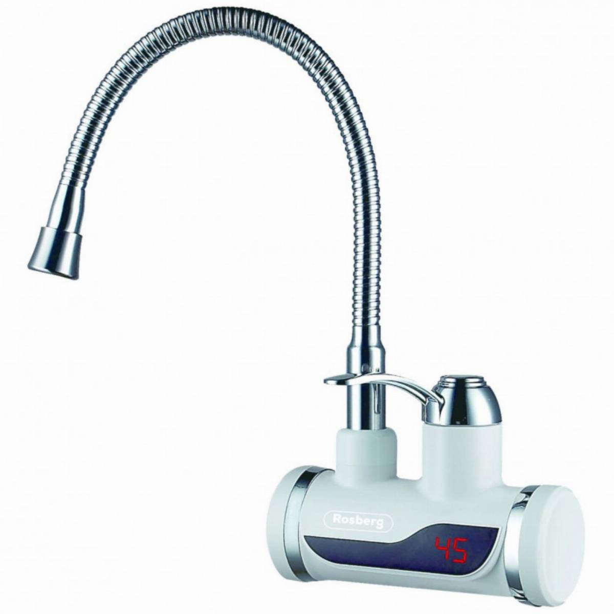 Θερμοσίφωνας νερού με εύκαμπτο στόμιο Rosberg R57100C, με οθόνη, μέχρι 60°C, για τοίχο, λευκός