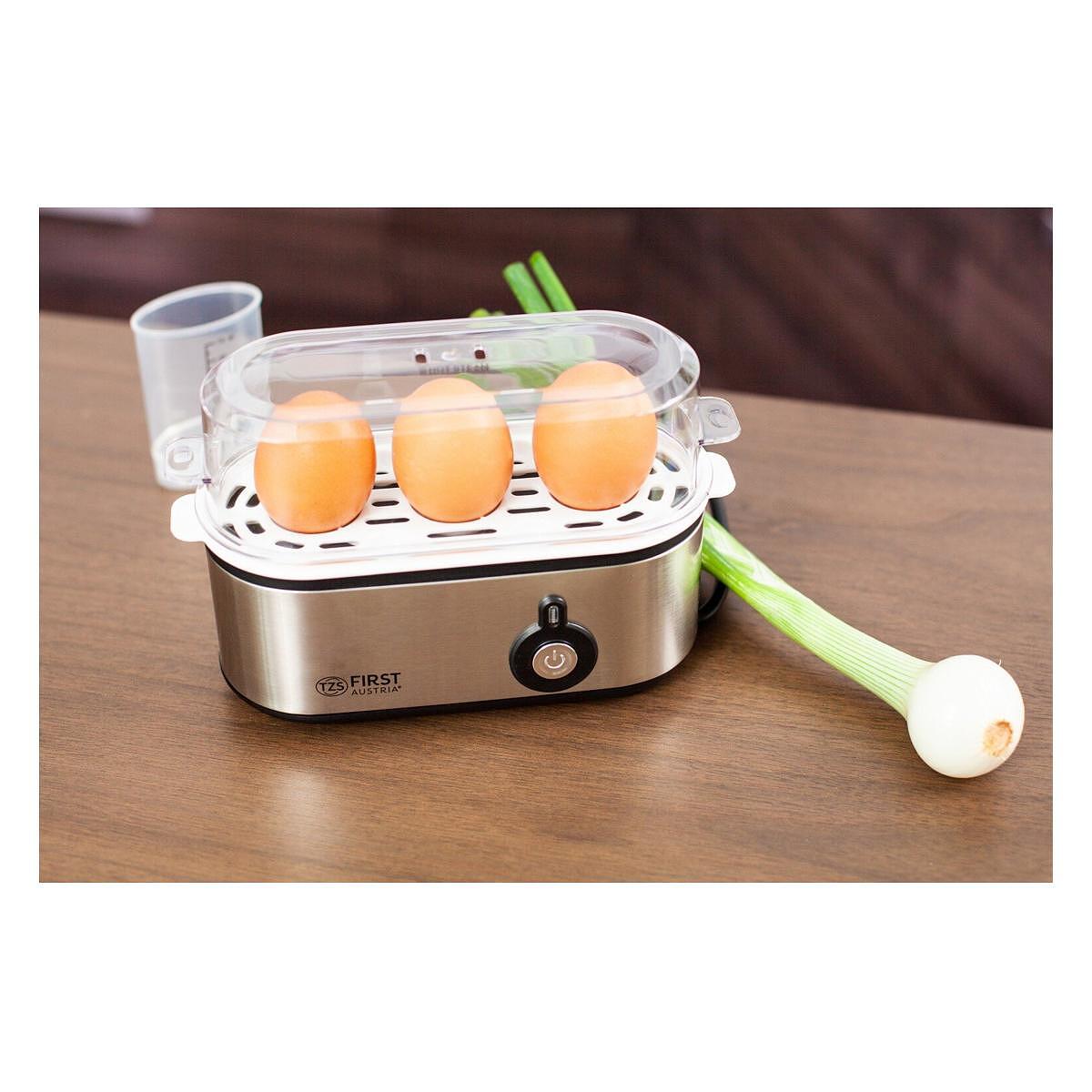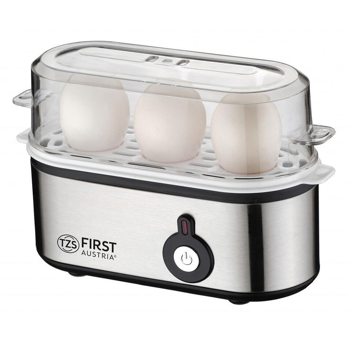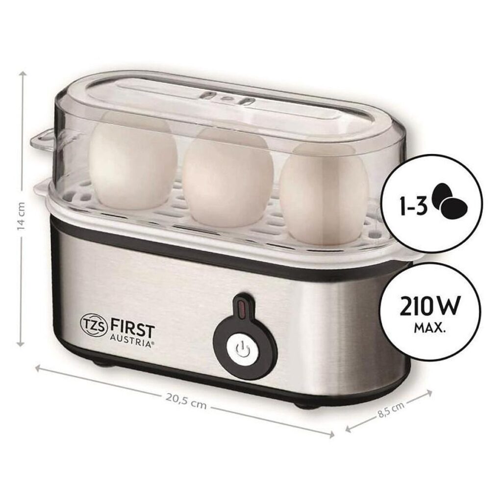 Βραστήρας αυγών First Austria FA-5115-2, 210W, έως 3 αυγά, κουμπί διατήρησης θερμοκρασίας, δοσομετρικό κύπελλο, inox